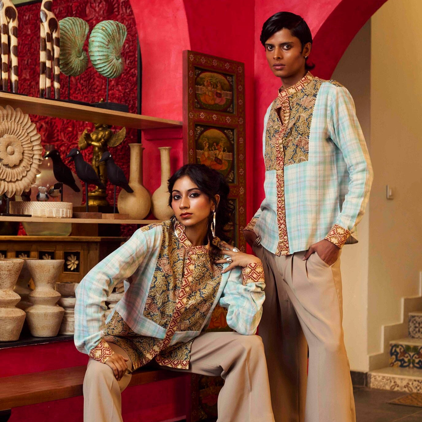 Modern silhouettes brought to life with the tactile beauty of kantha stitches, weaving India’s craft heritage into a bold, contemporary beginning.