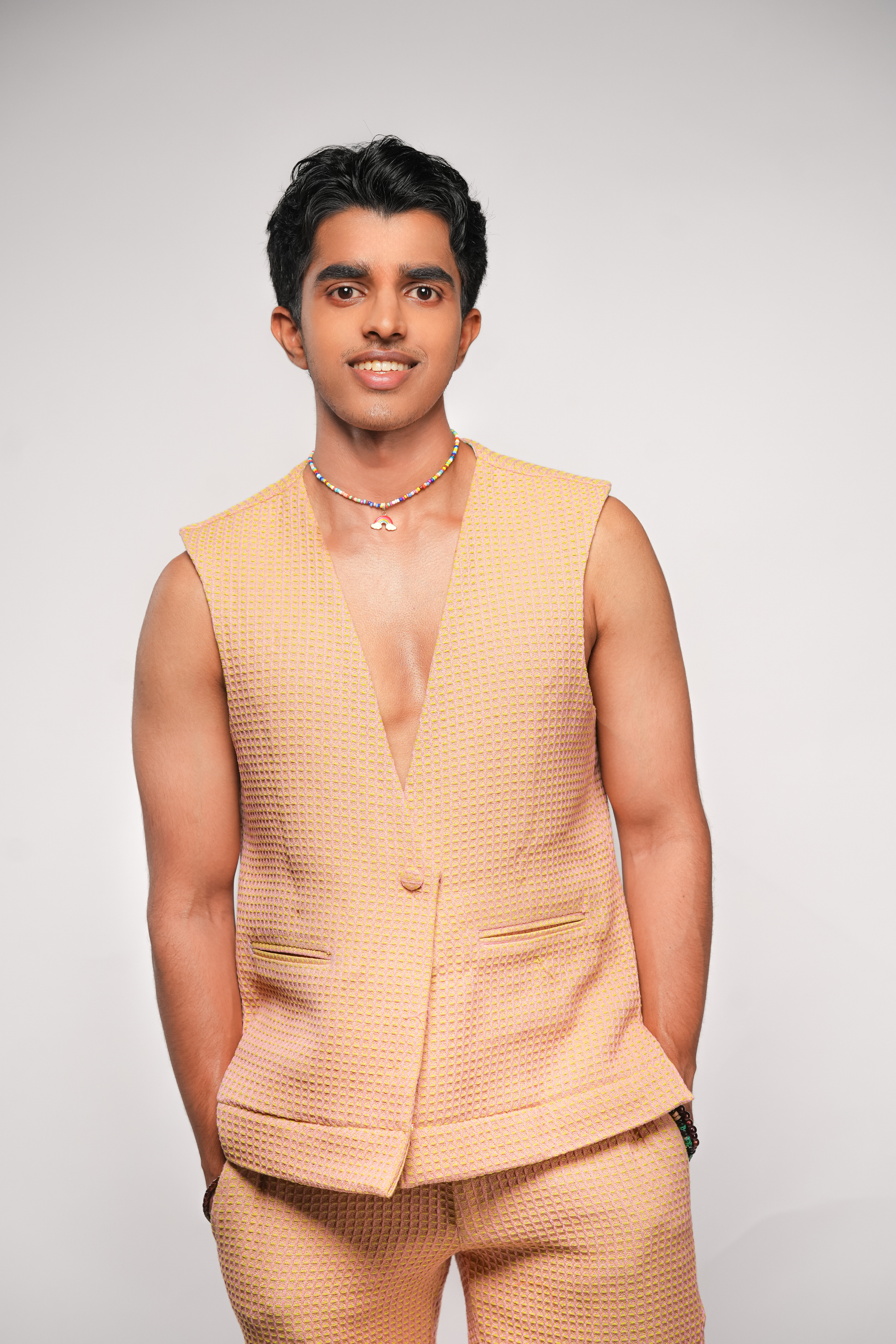 Waffle weave block print lining, handcrafted detailing,